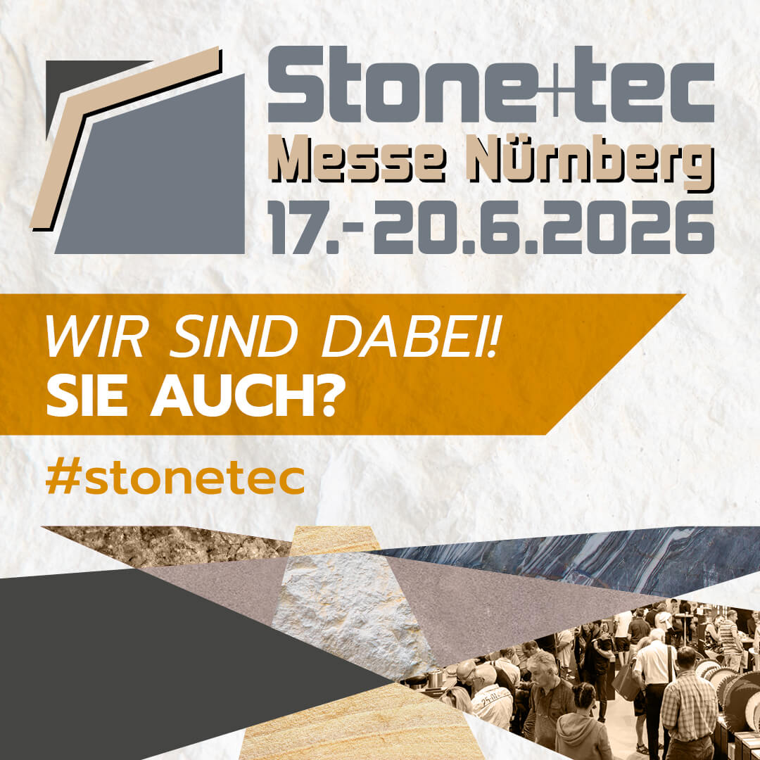 Die Stone+tec, internationale Fachmesse für Naturstein und Steintechnologie, findet vom 17. bis 20. Juni 2026 in der Messe Nürnberg statt. Der DNV ist wieder mit einem Stand vor Ort (Halle 11) und stellt die prämierten Projekte des Deutschen Naturstein-Preises 2026 sowie die Mustersammlung Deutscher Natursteine aus.